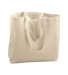 11-ounce 100% cotton canvas * Extra long natural web handles, reinforced at stress points * 5-inch bottom gusset * 20" x 15" x 5"